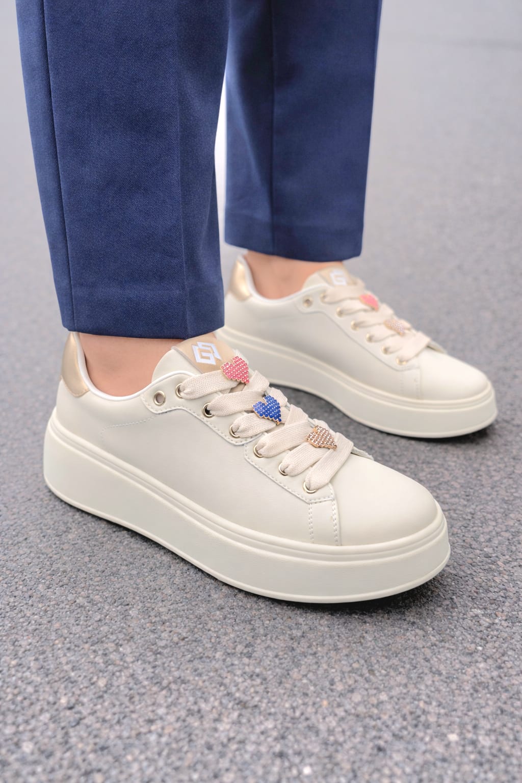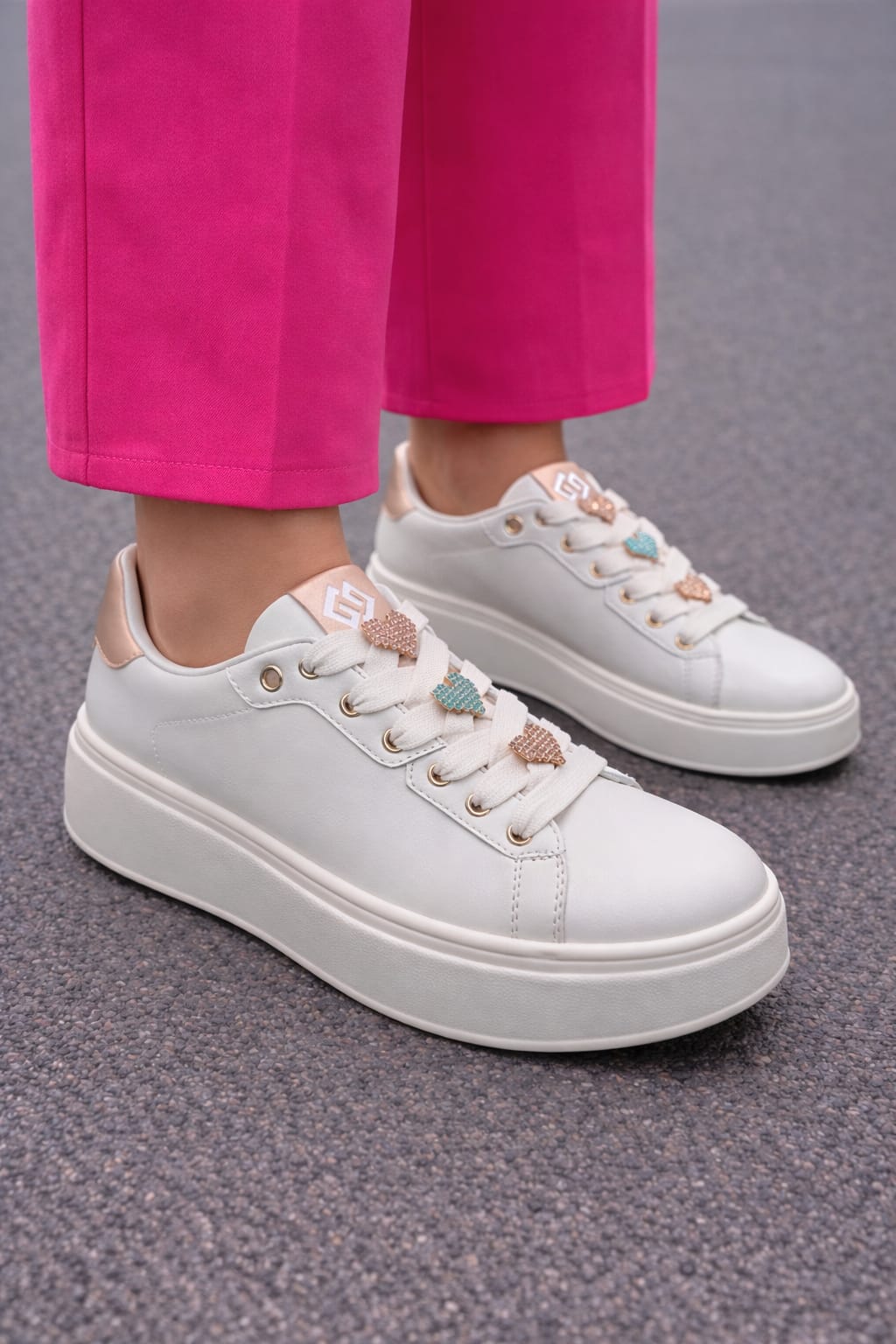 SNEAKERS CON LACCIO E ACCESSORIO INTEGRATO PLANTARE INTERNO ESTRAIBILE CALZATA REGOLARE FONDO GOMMA ALTO 4CM