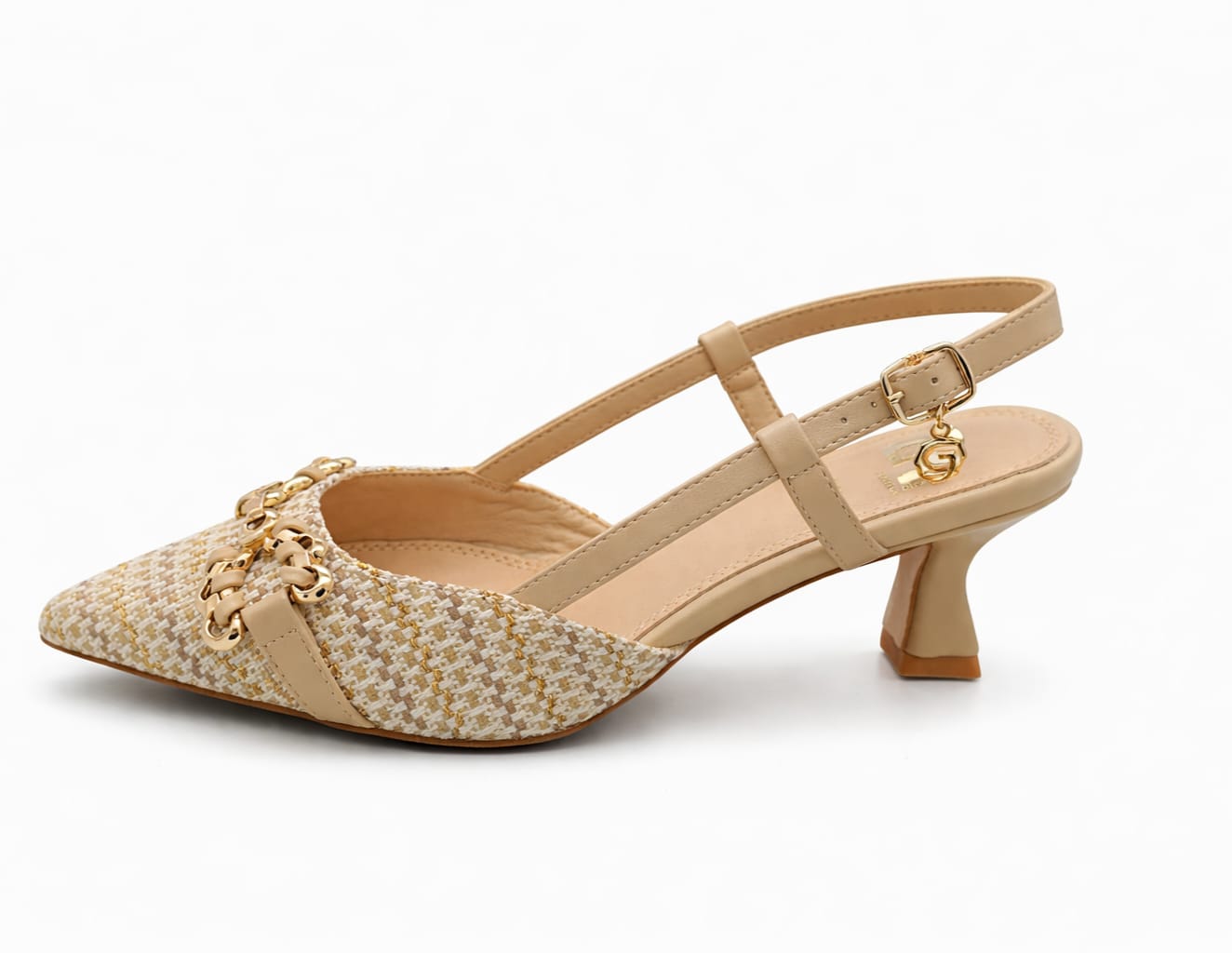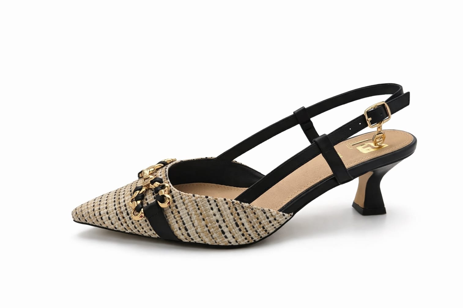 CHANEL IN RAFFIA, FIBBIA CON DETTAGLI IN ORO TACCO 6CM SOTTOPIEDE IN VERA PELLE CALZATA REGOLARE I