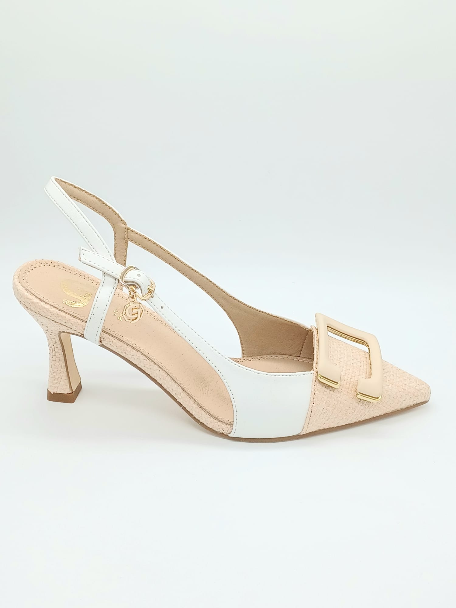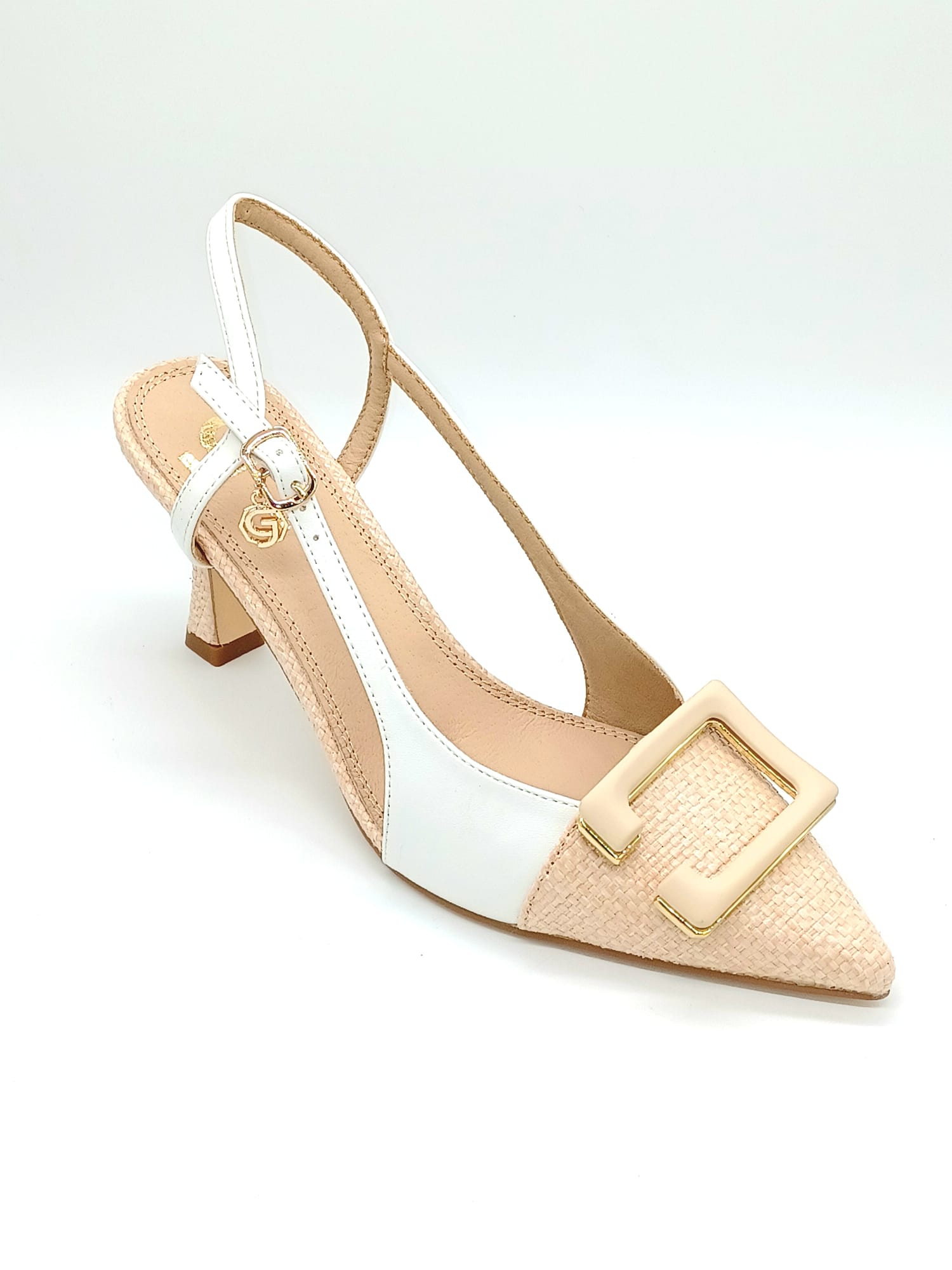 CHANEL IN PELLE CON RIPORTO IN RAFFIA TACCO 7 CM SOTTOPIEDE IN VERA PELLE CALZATA REGOLARE
