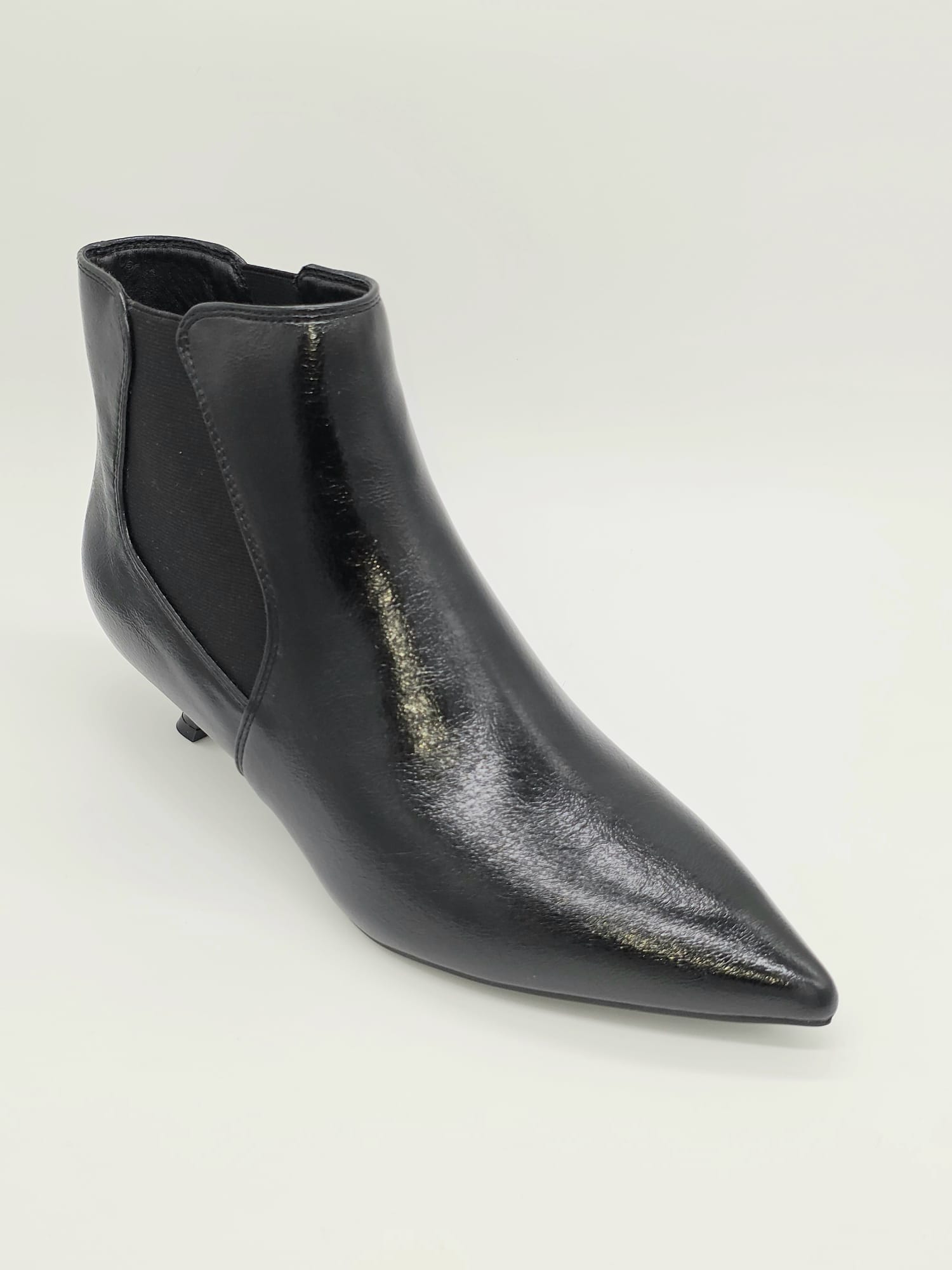 TRONCHETTO CON TACCO ALTO 4CM EFFETTO LUCIDO PUNTA SFILATA ELASTICI LATERALI PER UNA CALZATA PIU COMODA