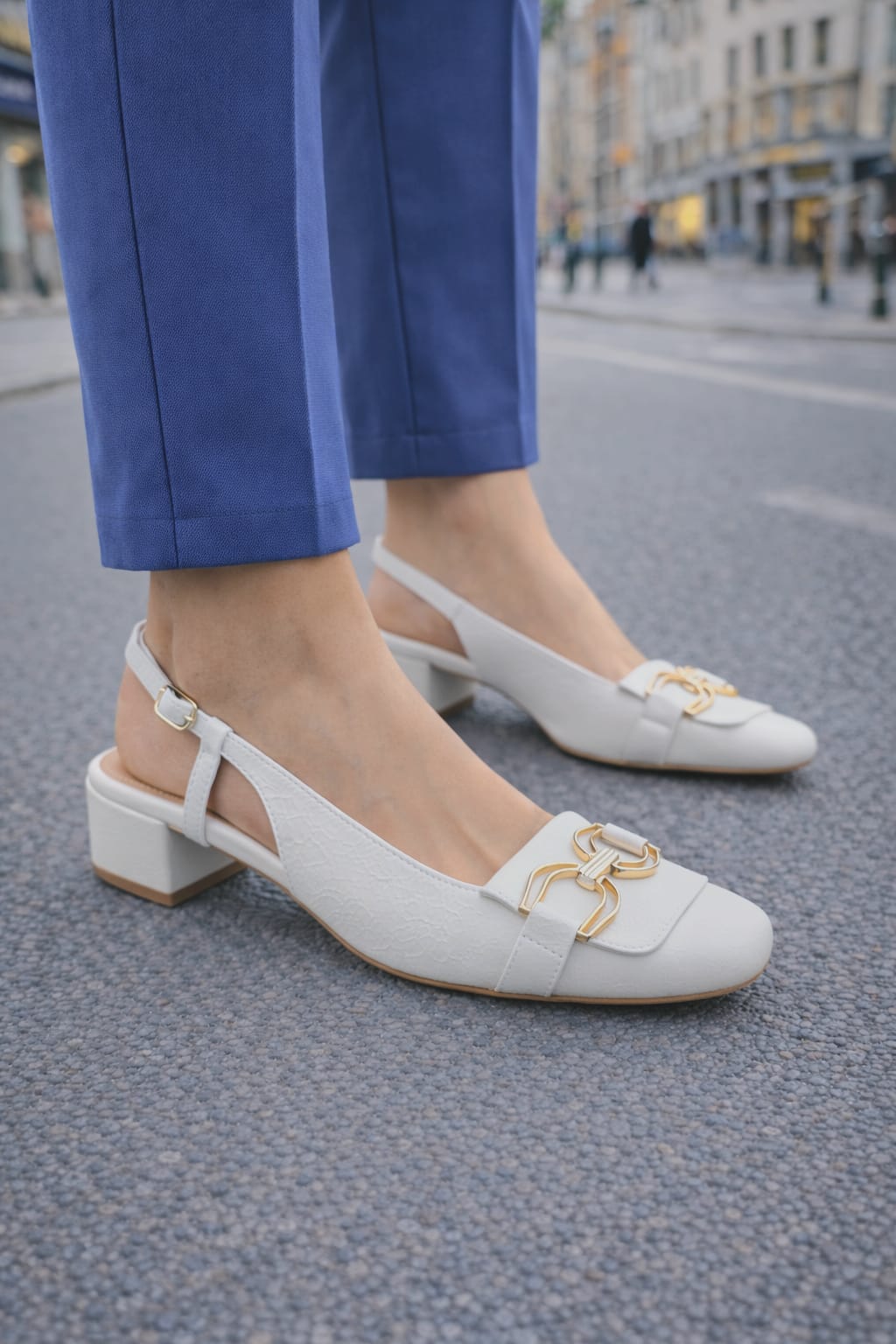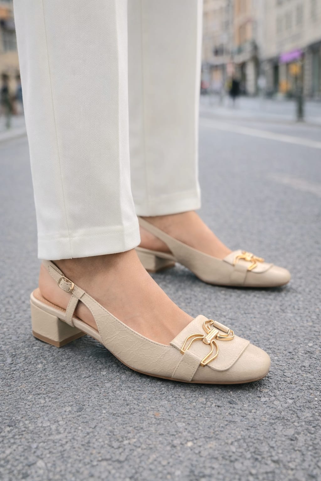 BALLERINA IN VERNICE TACCO 4 CM SOTTOPIEDE IN VERA PELLE ACCESSORIO INTEGRATO PUNTA LEGGERMENTE LARGA CALZATA REGOLARE