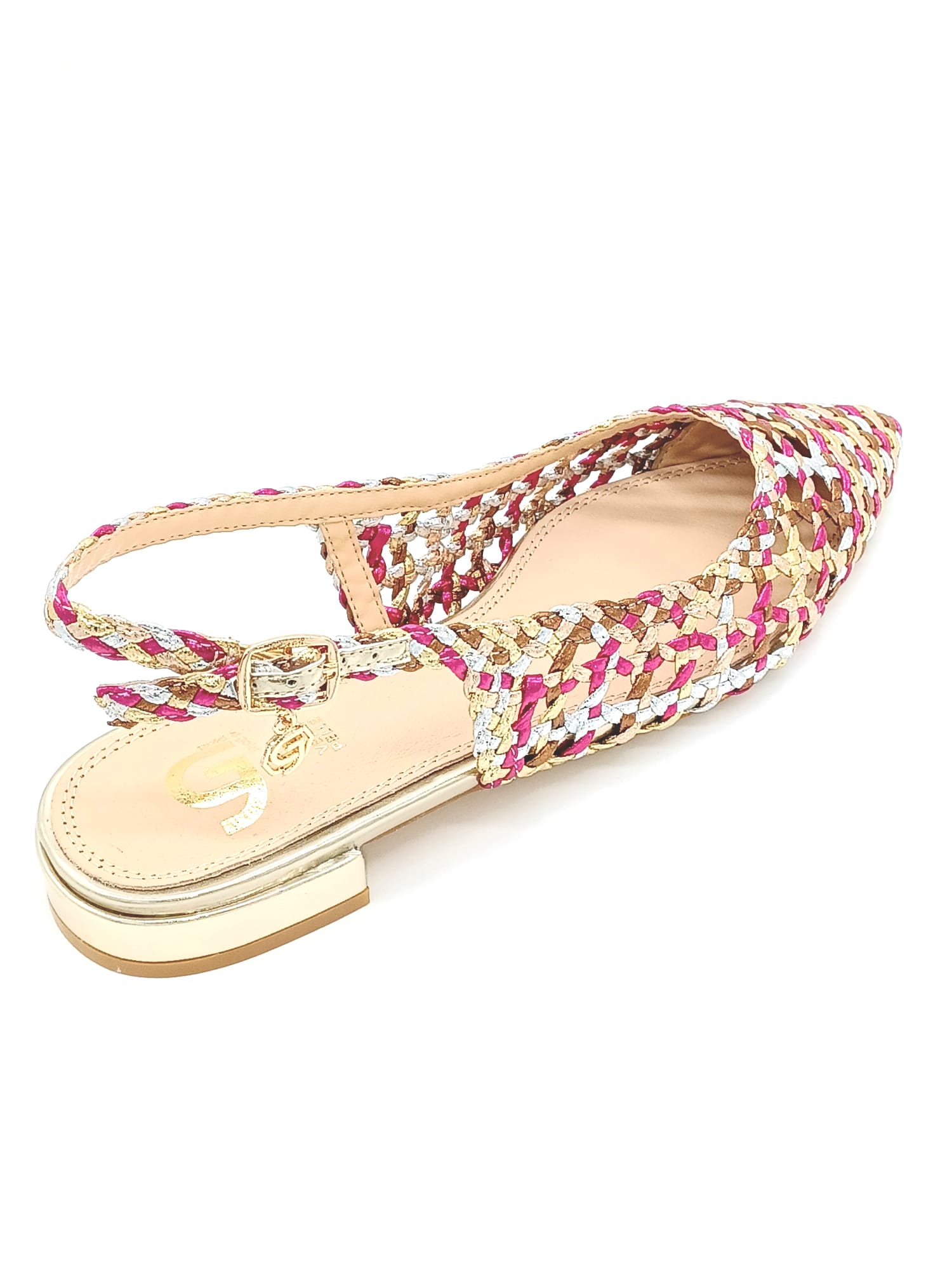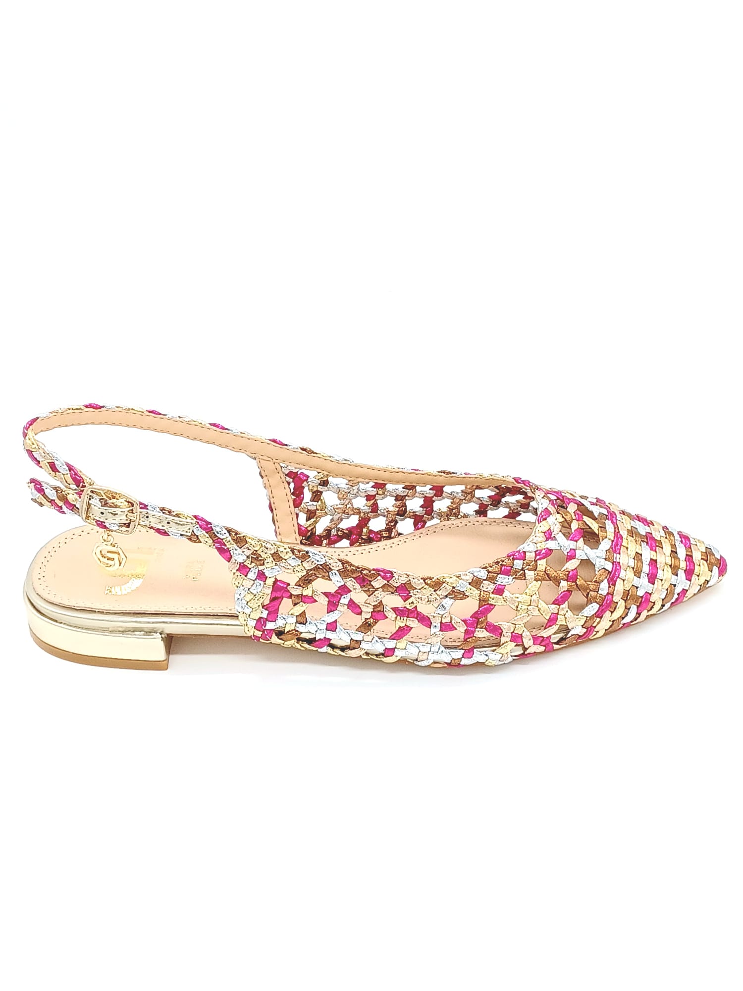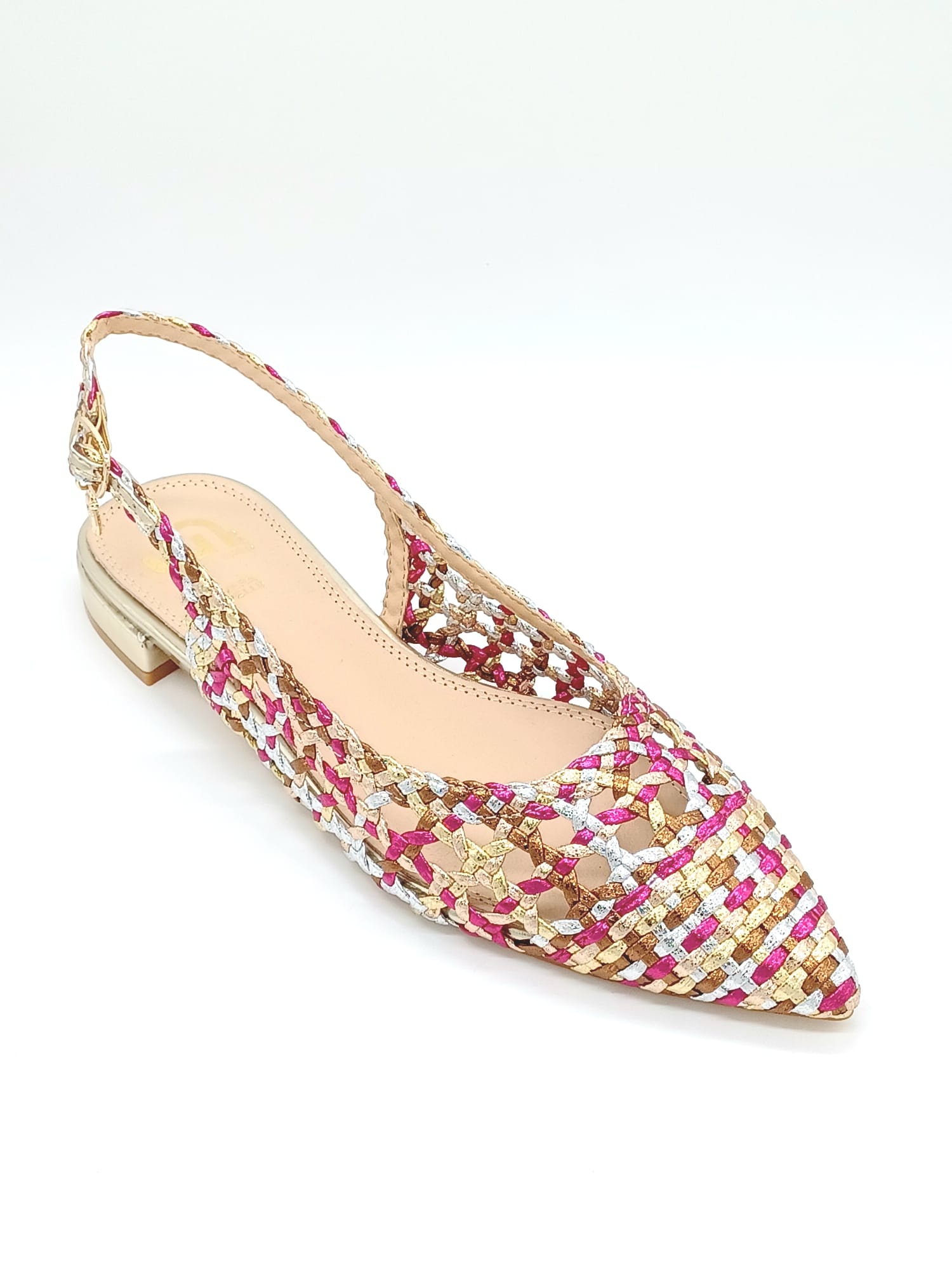 BALLERINA CON INTRECCIO MULTICOLORE SOTTOPIEDE IN VERA PELLE TACCO 2CM CALZATA REGOLARE