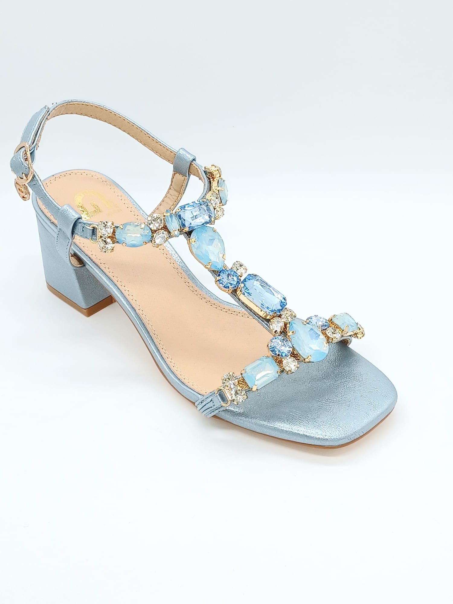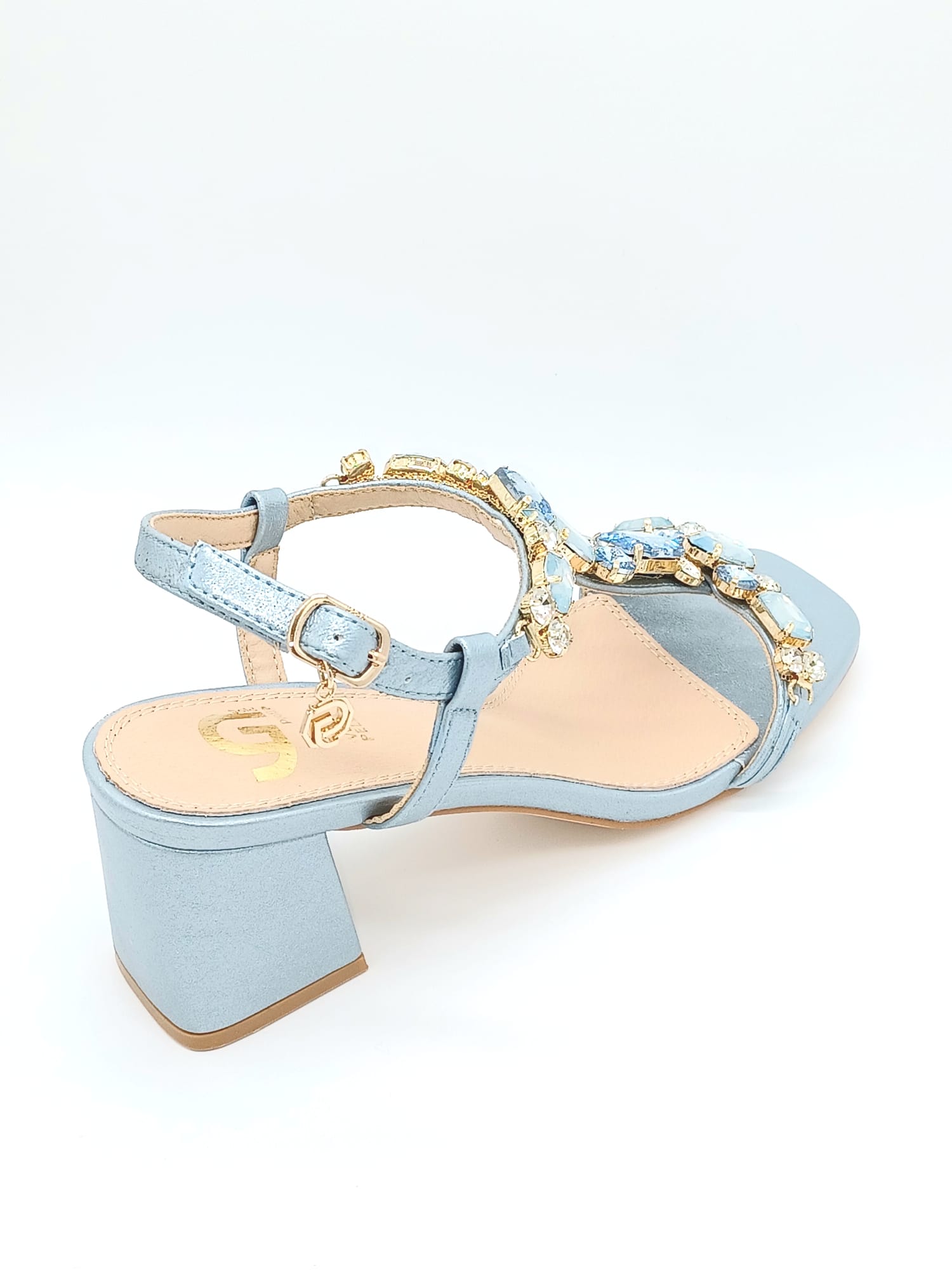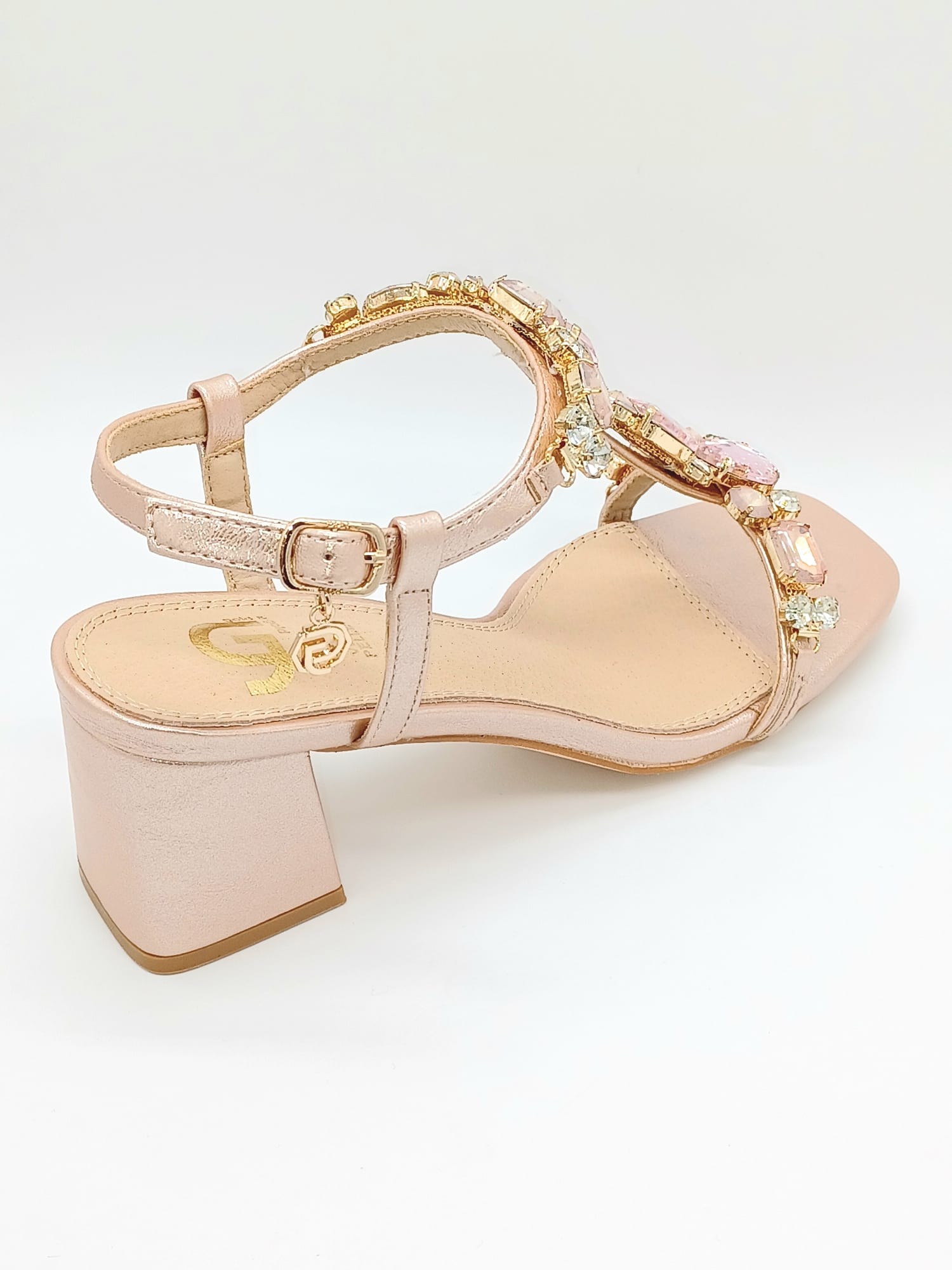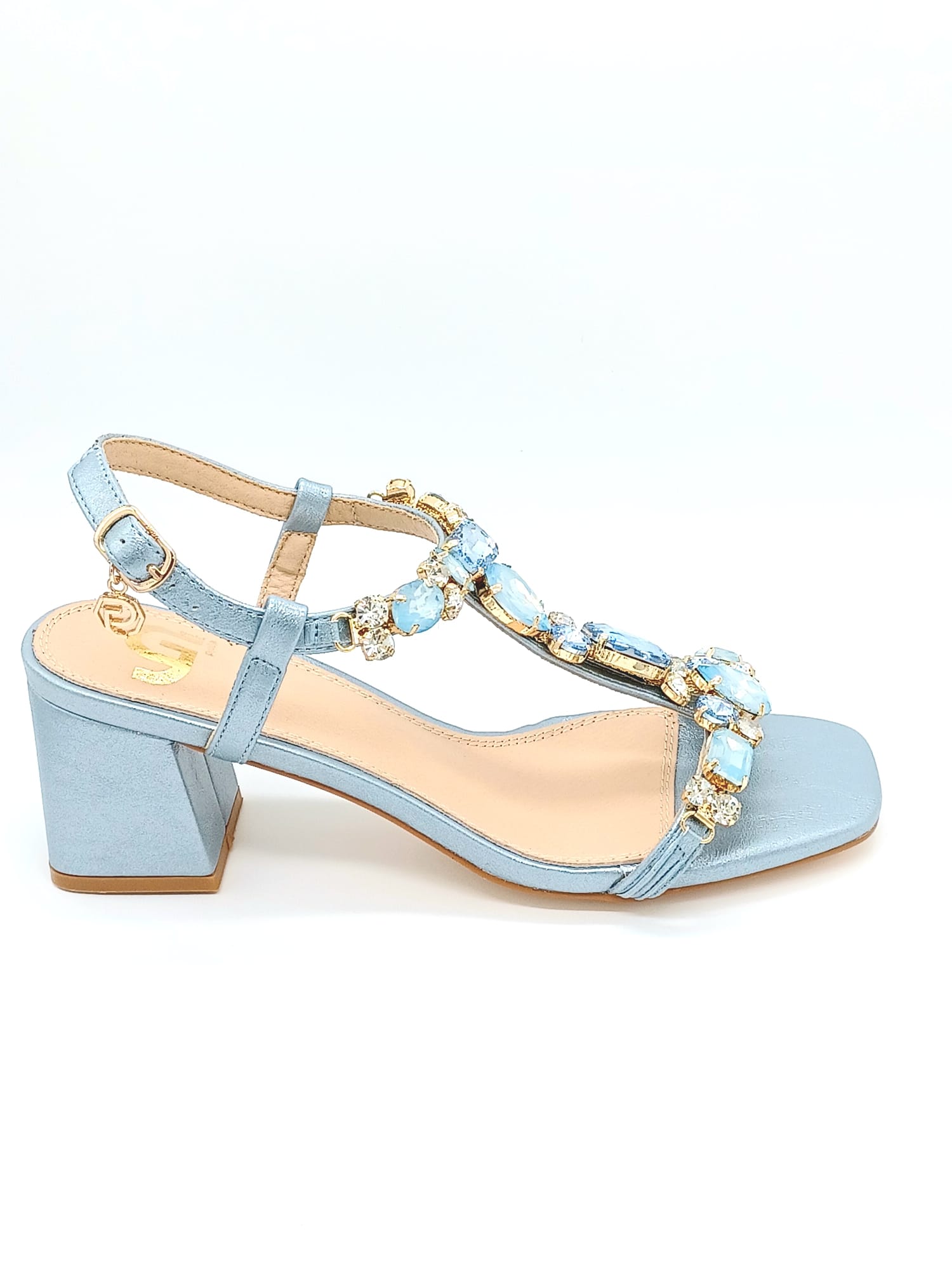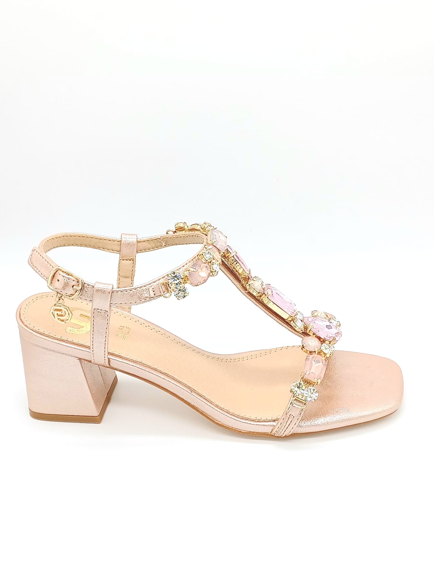 SANDALO TACCO CON EFFETTO LAMINATO PIETRE IN TEMA COLORE TACCO 7CM CALZATA REGOLARE SOTTOPIEDE IN VERA PELLE