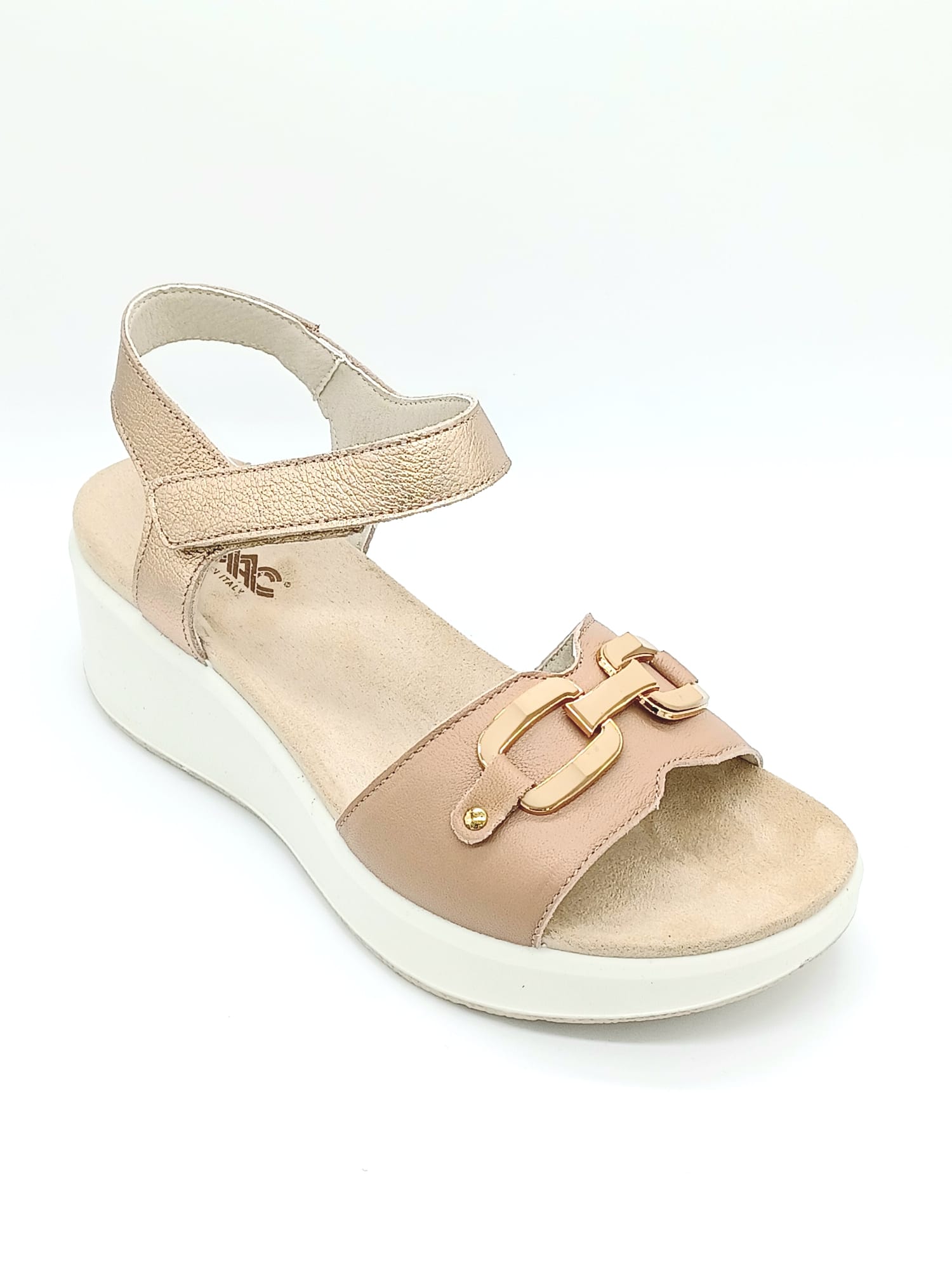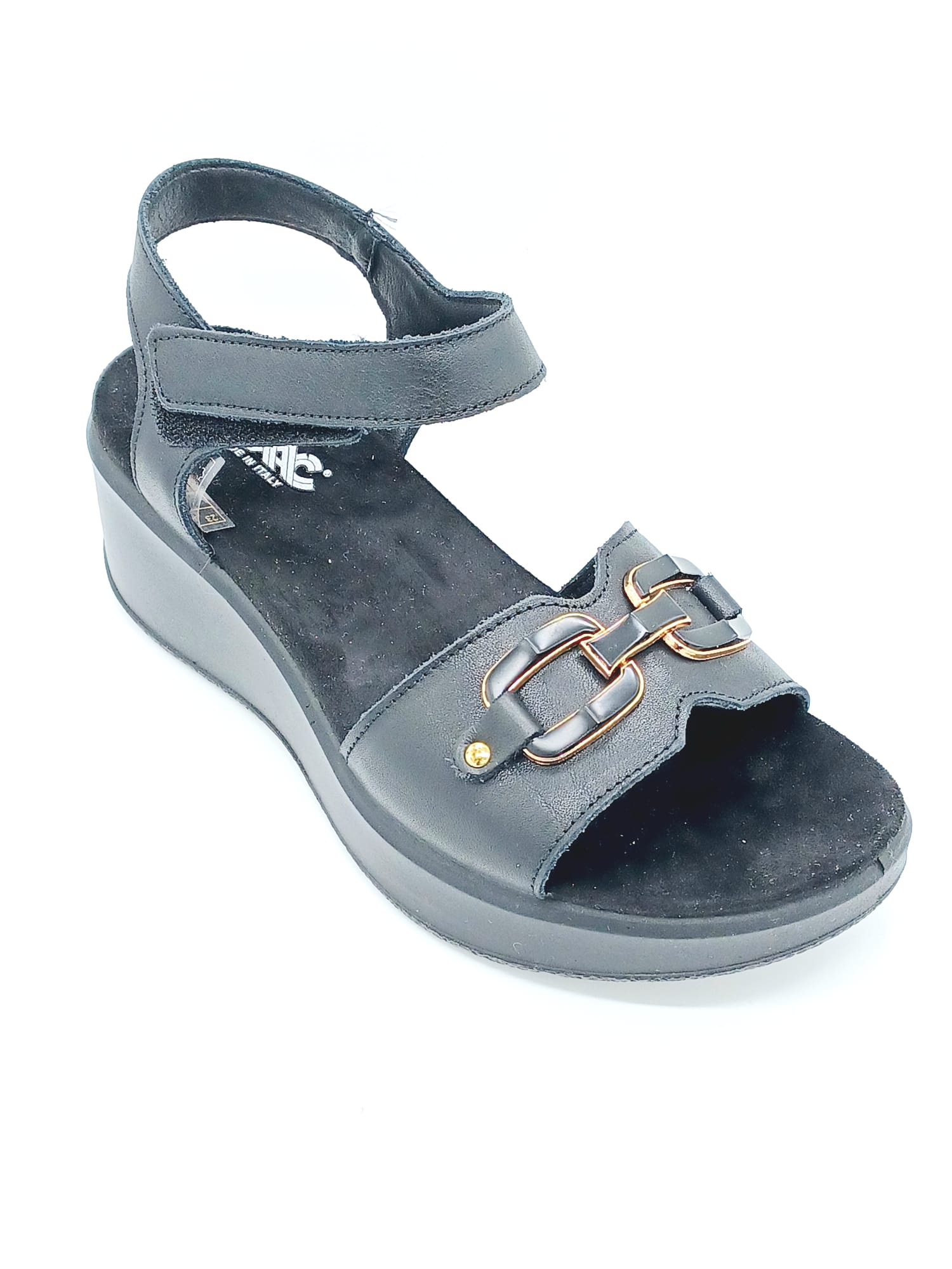 SANDALO ZEPPA CON ACCESSORIO LINEA COMODA SOTTOPIEDE ANATOMICO IN PELLE ALTEZZA ZEPPA 5CM CINTURINO CON STRAPPO CALZATA COMODA