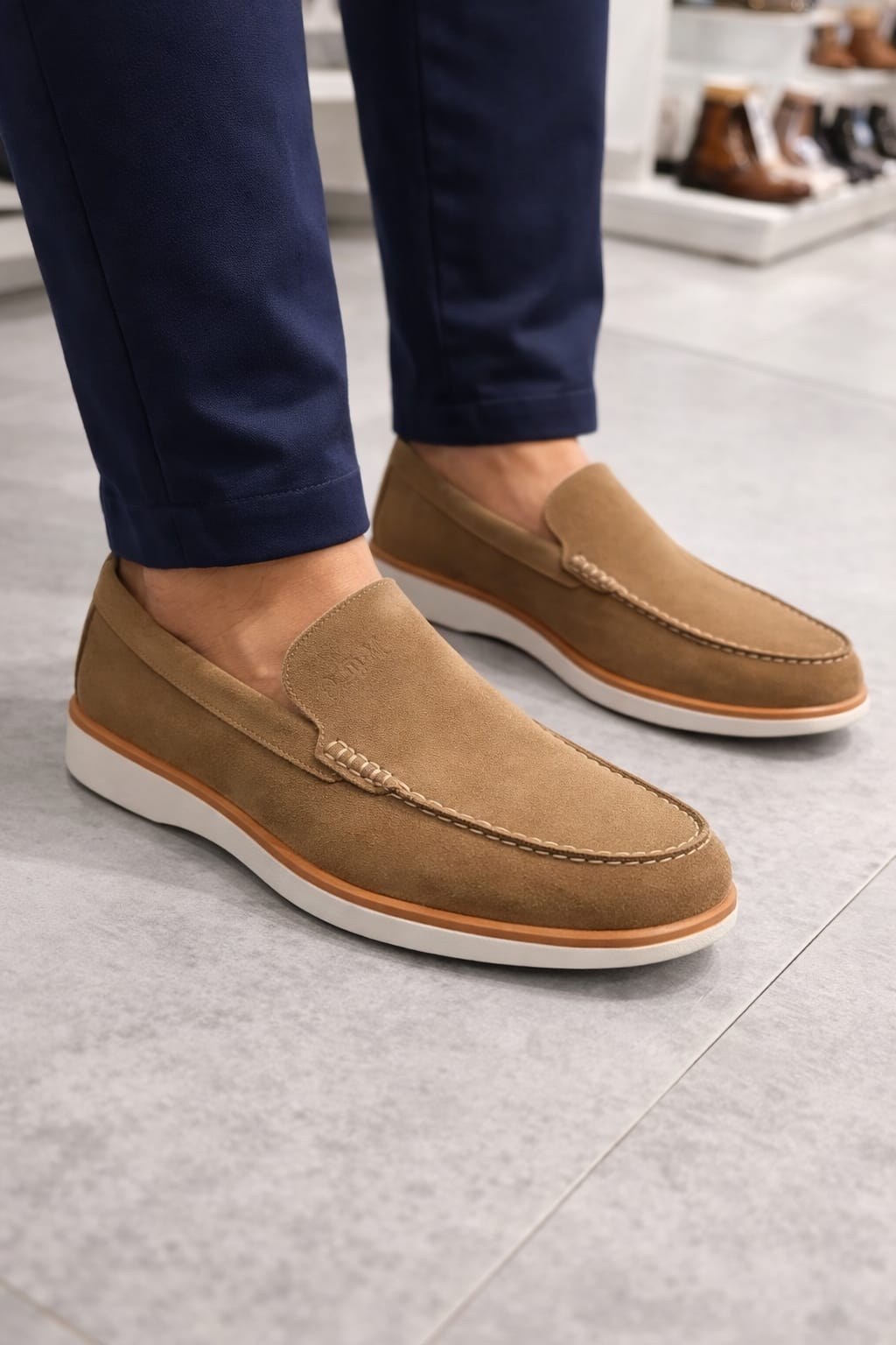 MOCASSINO IN CAMOSCIO DALLO STILE MODERNO E PULITO , LEGGERO ED ELEGANTE PERFETTO PER OUTFIT CASUAL CALZATA REGOLARE